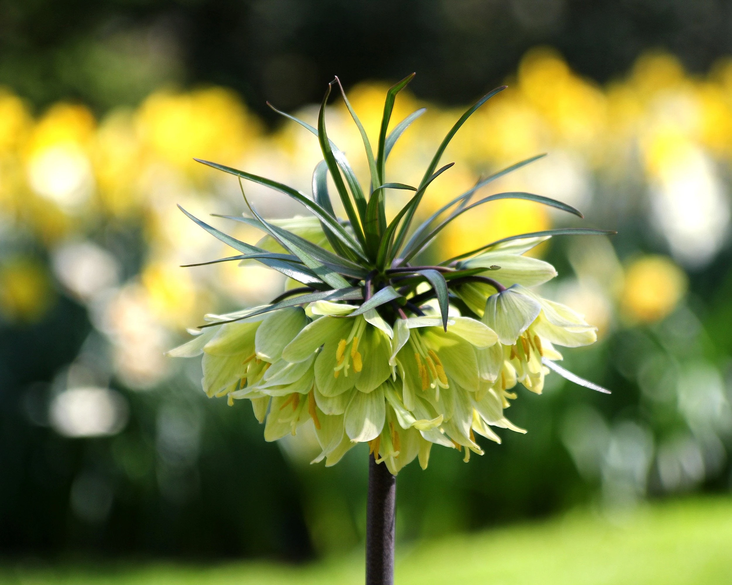 Put your garden in the limelight this spring! Fritillaria ‘Raddeana’ is a very unusual crown imperial with soft cream blooms that have a touch of lime green deepening to a more intense limey yellow as the blooms mature. You’ll be thinking of champagne and cocktail dresses as your Fritillaria ‘Raddeana’ struts it stuff. But despite its prima donna appearance, your flowers are no delicate hot-house blooms that require pampering and endless attention.