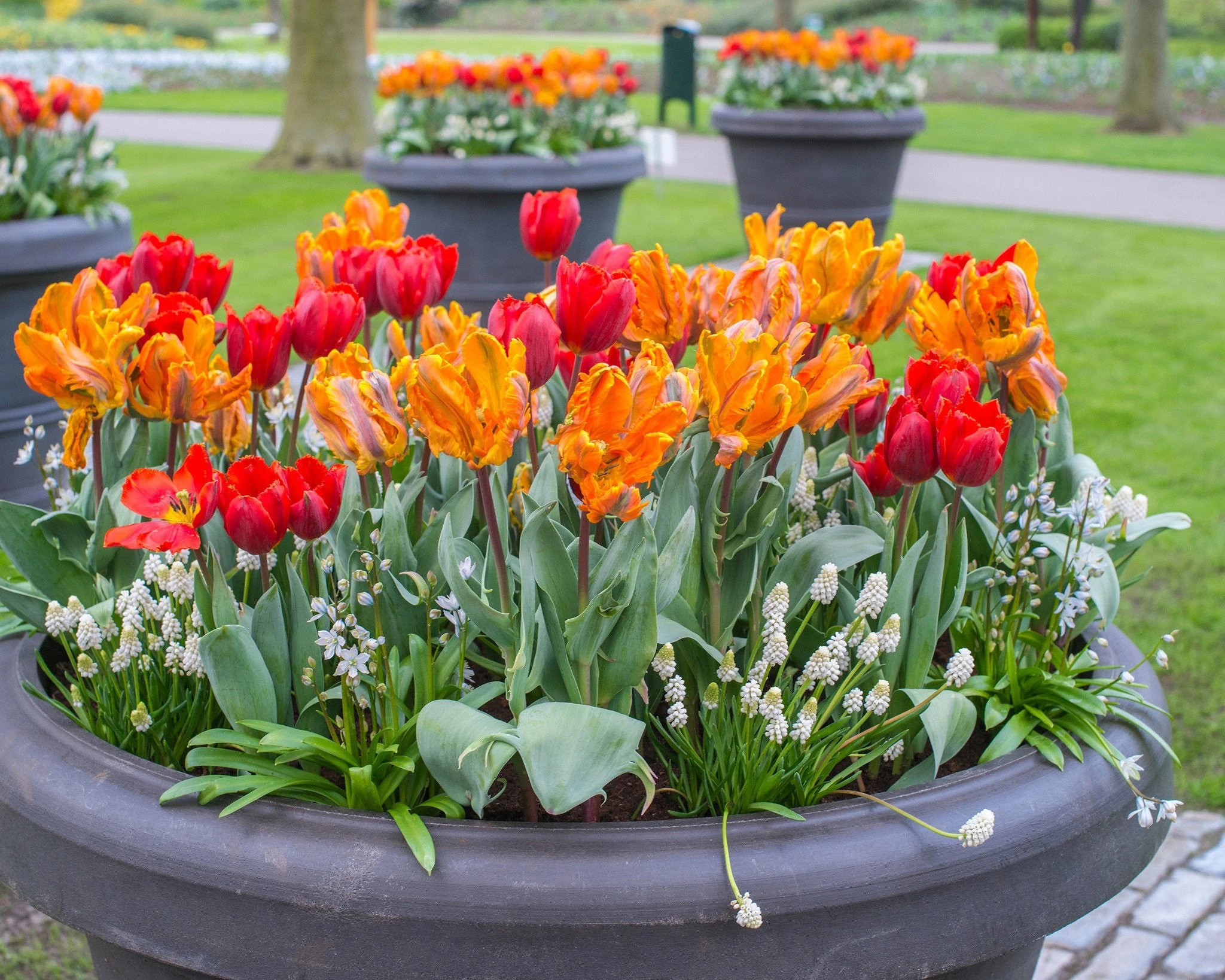 Even traditionalists who adore the blue of standard grape hyacinths won’t grumble when they see the entrancing carpet of white blooms you’ll get from Muscari aucheri ‘White Magic’, a 2008 introduction that has won its justified place as a firm favourite. A magical setting for other spring flowers, they’re also magnificent when planted in snowy drifts all by themselves. They make excellent container plants when grouped closely together, and of course, they’re the perfect foil for your blue grape hyacinths too. Like other grape hyacinths, Muscari aucheri ‘White Magic’ looks delicate, but isn’t in the least bit fussy, often settling in as a perennial.