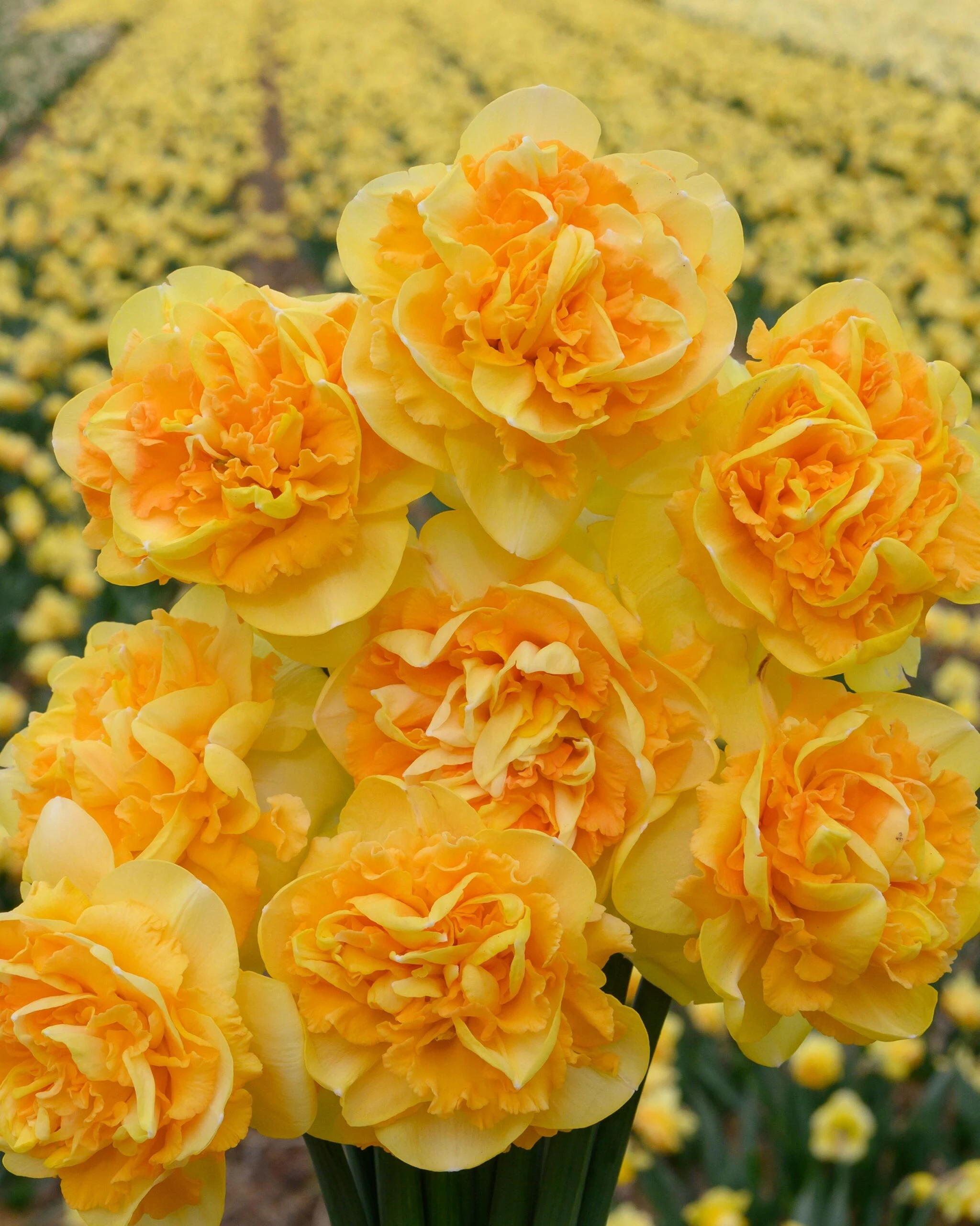 One of the most beautiful Narcissus we’ve seen, Narcissus ‘Art Perfume’ opens up like a bowl of prettiness for your viewing pleasure. With a flat face that displays all of the treasures within, you can fully appreciate the rounded, primrose yellow petals that border a tightly ruffled, orange double corona. As well as those lively good looks, Narcissus ‘Art Perfume’ has a captivating perfume—hence the name—which will surely put it at the top of your spring flowers wishlist.Â