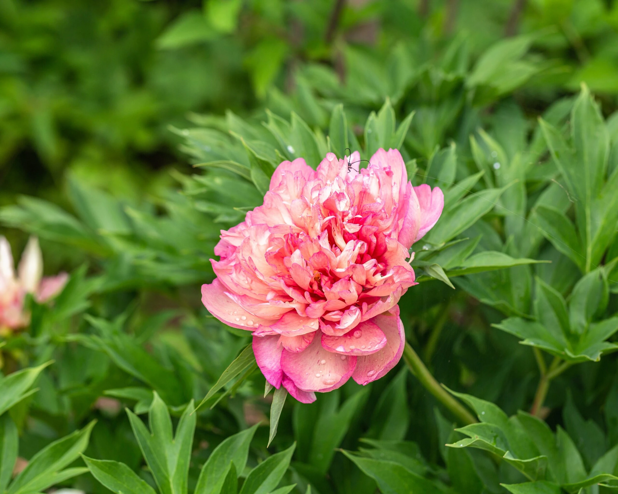 A cross between an herbaceous and a tree peony, Paeonia ‘Hillary’ has stunning, large semi-double rosette flowers in gorgeous shades of raspberry pink, turning to cream as they mature. The blooms, which appear in late spring and early summer, are lightly fragrant. When the finely divided leaves open in spring they have reddish tinges, then they become bright green, before turning red in the autumn. The branches of this Peony are sturdy, so no staking is necessary!
