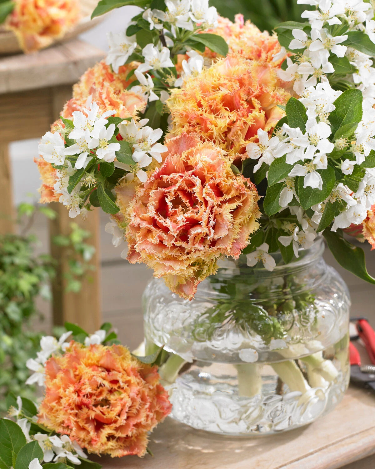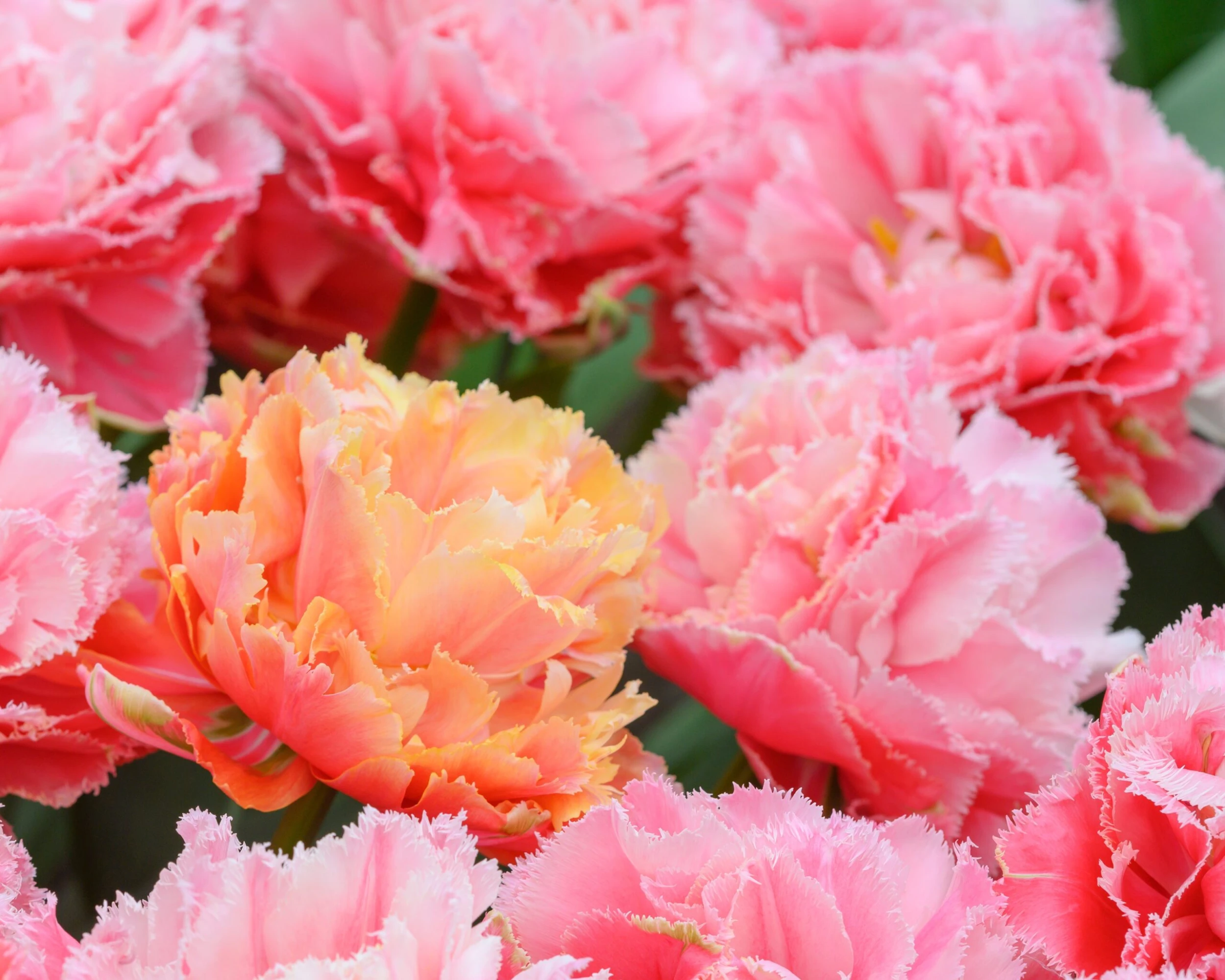 Beautiful and long-lasting, Tulip ‘Brisbane’ will delight you when in full flower—the richness of the blooms bring to mind the lusciousness of peonies. Tulip ‘Brisbane’ is a fabulous compact, double flowering variety, producing stunning orange, peach, pink and light yellow, cup-shaped, ruffled flowers. Each petal has a finely fringed edge. The leaves are broad, lance-shaped and a beautiful blue-green. Relatively new, and rarely seen for sale, it is a tulip to savour.