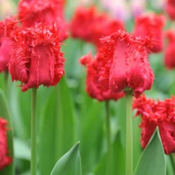 Things get lively when Tulip ‘Dee Jay Parrot’ joins the party! This fun and funky parrot tulip steps on the scene when the tulip season in in full swing, displaying a fabulous outfit of feather-like petals in red and gold. When it’s in full bloom, this colourful character brings summer vibes with its exotic appeal. You can expect excitement in March and April as these large flowers slowly unfurl from their curiously curled up buds, gradually developing their colours. After all that the anticipation, Tulip ‘Dee Jay Parrot’ doesn’t disappoint when it finally reaches its moment in the spotlight, fully opening into a real firecracker of a flower!