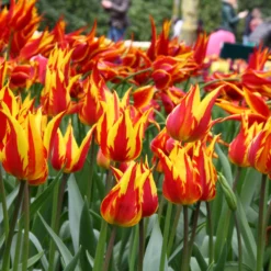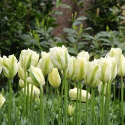These extra special tulips are so gorgeous they’ll melt your heart when they unfurl those superbly swanky petals. Tulip ‘Je t’aime’ is a real masterpiece in its own right, but you can display it in combinations to highlight its unusual shape and colour. Try pairing this mid-to-late season tulip with blue or deep purple April flowers like Anemone blanda, muscari, Tulip ‘Merlot’ or Tulip ‘Negrita Double’.